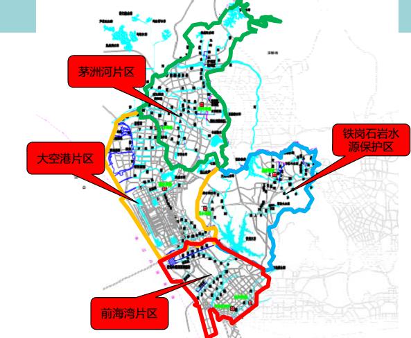 該項(xiàng)目位于寶安區(qū)前海灣片區(qū),地理位置屬于新安和西鄉(xiāng)街道,流域劃分屬于珠江口水系,面積約為117km2。該項(xiàng)目包含21個子項(xiàng)目,涉及面廣,包含河道整治、雨污分流、黑臭水體、防洪排澇(含深層隧道)、管網(wǎng)清淤和修復(fù)類項(xiàng)目。項(xiàng)目階段包含規(guī)劃統(tǒng)籌、工可和初設(shè)階段。該項(xiàng)目總投資約56億元,勘察設(shè)計費(fèi)共3071萬元(其中勘察費(fèi)約1200萬元,設(shè)計費(fèi)約1871萬)。我司市政設(shè)計二院給排水組從2016年4月起,參與寶安區(qū)前海灣片區(qū)水環(huán)境整治評估咨詢工作,通過對該片區(qū)前期咨詢和設(shè)計成果的積累,已對該片區(qū)的水污染治理、管網(wǎng)及內(nèi)澇情況有了充分了解。