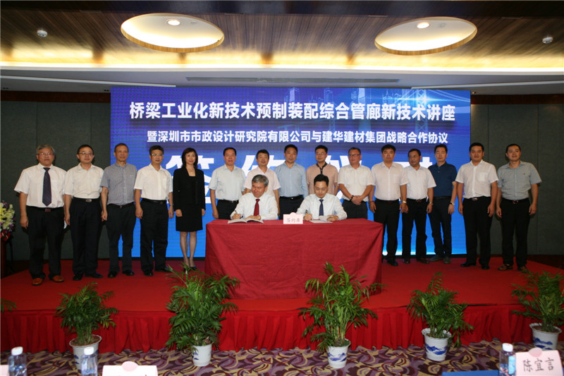 “橋梁工業(yè)化新技術(shù)、預(yù)制裝配綜合管廊新技術(shù)講座”暨 “深圳市市政設(shè)計(jì)研究院有限公司與建華建材集團(tuán) 戰(zhàn)略合作協(xié)議簽約儀式”在深圳成功舉行