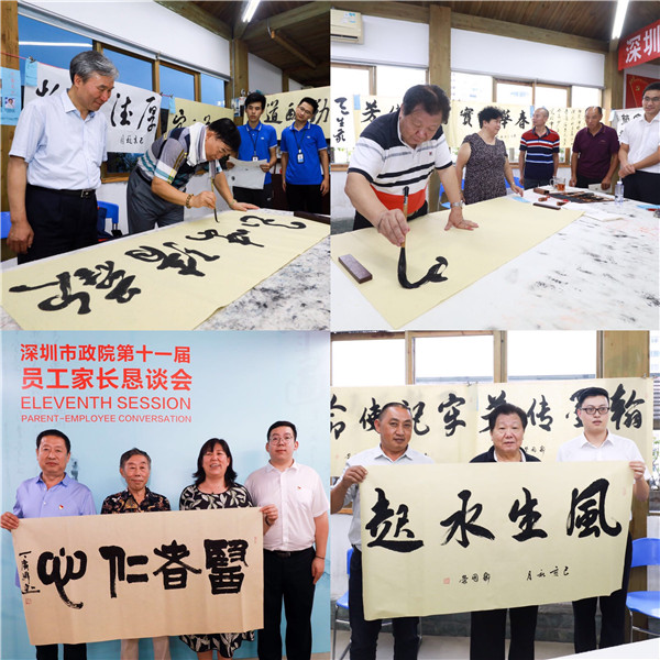 懇談會后,家長們來到公司八樓“職工之家”,參加了書畫交流活動。鄒國榮、董兵團、丁廣偉、徐怡等多位書畫家圍繞家長懇談會主題,現(xiàn)場揮毫潑墨,為家長們即興創(chuàng)作,一幅幅遒勁有力的書法和栩栩如生的畫作,展現(xiàn)了藝術家深厚的文學修養(yǎng)和藝術功底,書畫現(xiàn)場意趣盎然、墨香四溢。